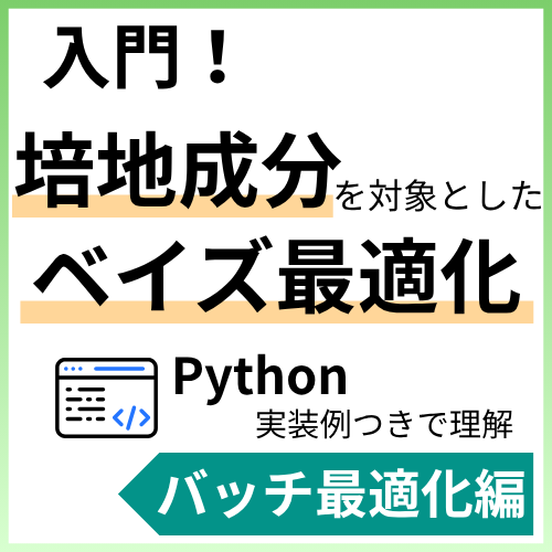 培地成分を対象としたベイズ最適化の活用入門(バッチ最適化編) ベイズ最適化活用の続編。培地最適化におけるベイズ最適化の「バッチ最適化」を解説。逐次最適化との違いや探索効率のトレードオフを示し、細胞培養の収量向上とコスト削減に直結する実務的な実装手順を紹介します。実務につながる実装コードと手順を解説。 詳しく読む