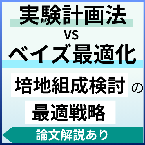 培地最適化におけるベイス最適化 vs 古典的実験計画法 培地最適化におけるベイズ最適化と実験計画法(DoE)の違いを徹底比較。細胞培養の収量改善やコスト削減につながる最新研究事例を解説し、ライフサイエンスR&Dに役立つ最適化戦略を紹介します。 詳しく読む