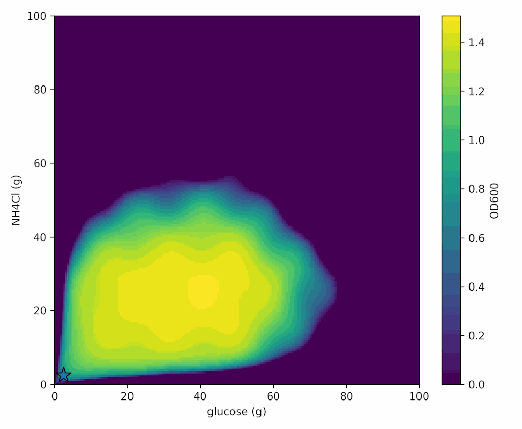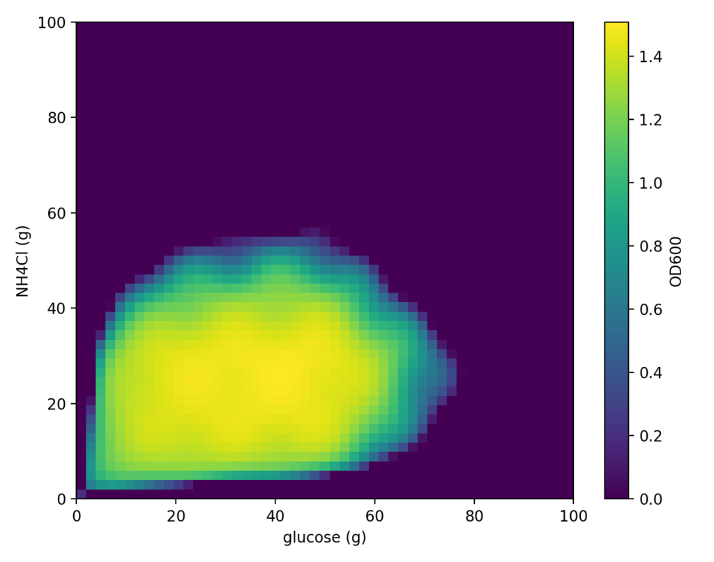 seed_df = df_raw.rename(columns={"Glucose (g)": "x", "NH4Cl (g)": "y", "0D600": "od"})